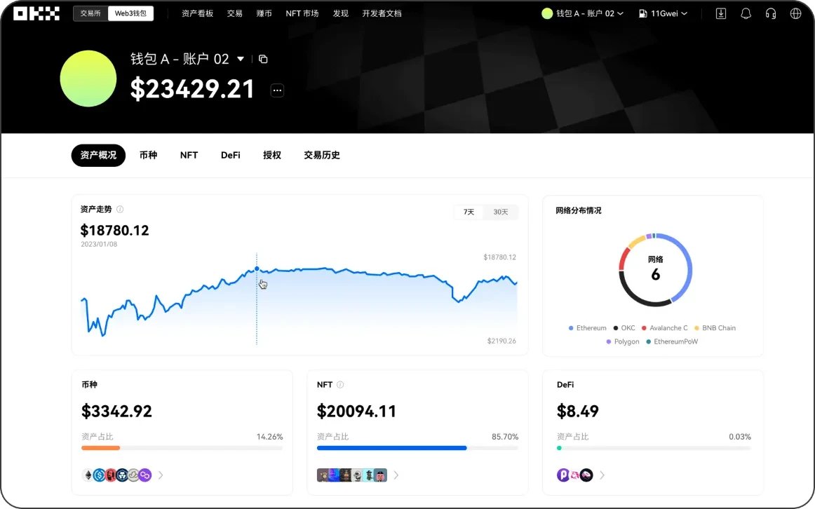 交易、Web3.0入口-Web3Wallet、NFT市场、DEX、DApps等产品,自研公链OKC